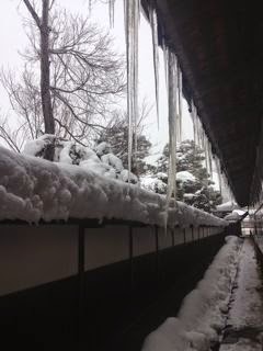 屋内の見学を終えてお庭を歩いていたら雪が激しく降り始めました。宮川朝市も店じまいが早い。