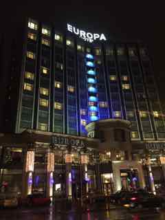 欧州内で爆破された回数が一番多い(?)といわれるヨーロッパホテルの前にはクラウンバーがあります。その建物の歴史は1826年に遡り、歴史的建造物や環境遺産を保護する団体ナショナルトラストが管理していますが普通に営業中。室内にはドア付きのブースが並んでいます。
